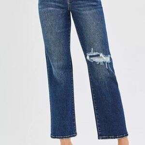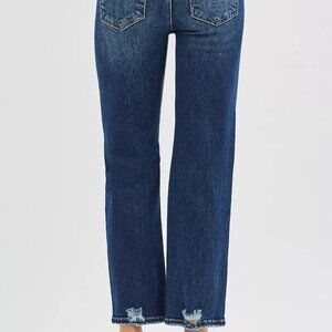 RISEN High Rise Crop Slim Straight Jenas with Hidden Knee Patch