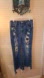 RISEN JEANS Trendy Distressed Blue Flare Jeans. Excellent Condition Size 13