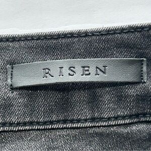 Risen Jeans women’s size 2XL, style XRDP1004, black distressed denim, ankle length skinny jeans, high rise fit, stretchy fabric, plus size fashion, raw hem detail, trendy casual jeans, dark wash, curve-friendly cut, soft comfort stretch, edgy everyday style, established Los Angeles brand, modern silhouette.