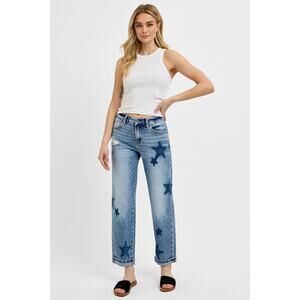 RISEN Mid Rise Boyfriend Star Shadow Detail Cuffed Jeans - PGA21091 - Size 5/27