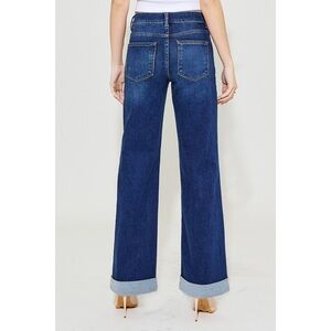 RISEN Tummy Control High Rise Wide Leg Cuffed Jeans β Dark Wash