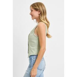 RISEN V-Neckline Button Closure Sleeveless Stretch Casual Denim Vest | Pistachio