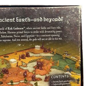 This Risk GODSTORM board game is in GOOD previously used condition. The game comes 100% complete with all of its original components to play the game. This game listing comes with an additional 17+ tokens with the game. The box has visible cosmetic damage and wear in the form of markings, scuffs, and scratches on the front, back, sides, and corners from age and previous use (see photos). The back of the box has wear to the upper corners of the top and bottom of the box (see photos). The board game has scuffs and wear from age and previous use (see photo). The board game tokens and components have wear from previous use (see photos).