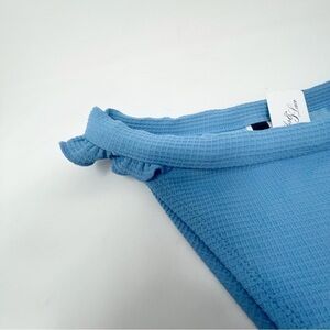RIS-K Women’s HORIZON Bikini Bottom Blue Ruffle Sides Cheeky Pool Vacation Size S. New with tags. All measurements are approximate.
