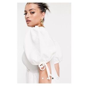 NEW with tags RIVER ISLAND Anthropologie White Puff Sleeve V Neck Tiered Midi Dress