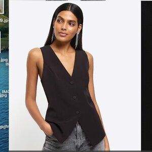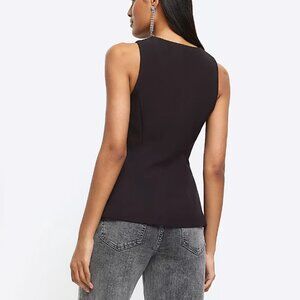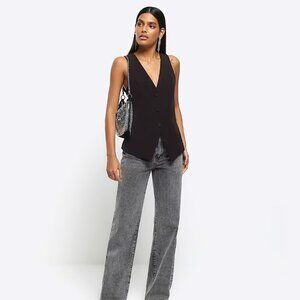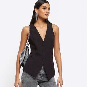 RIVER ISLAND BLACK LONGLINE WAISTCOAT Size UK 8 / US 4