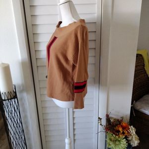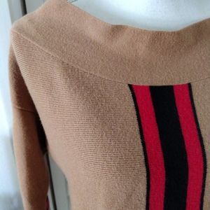 River Island soft off shoulder sweater with red/black stripe down the front and along 3/4 sleeves. Mint condition with no defects.