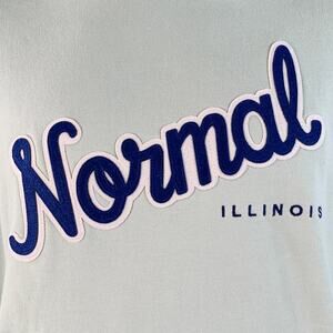 RIVIAN sweatshirt in a light blue cotton featuring a hooded style, "Normal, Illinois" applique, and kangaroo pocket. Made in USA.