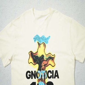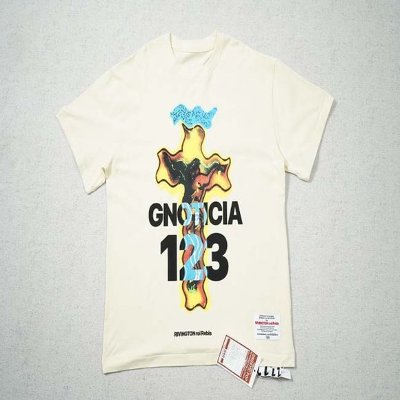 RIVINGTON ROI REBIS Yellow Alphabet Cross Print T-Shirt - Yellow Short Sleeve