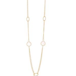 Brand new Rivka Friedman 18kt claud double necklace. Satin finished 18kt gold clad oval link and bezel round faceted rose quartz station on a detail necklace.