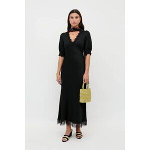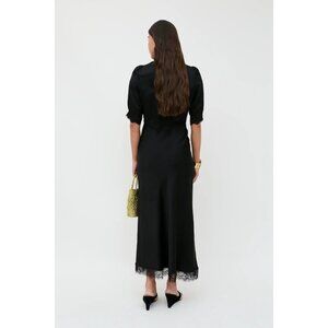 Description from retailer: Available in regular and petite. The Annina is an elegant satin midi dress with vintage-inspired lace trims. This style has a flattering bias cut and delicate blouson sleeves that are shirred so you can adjust the shape.