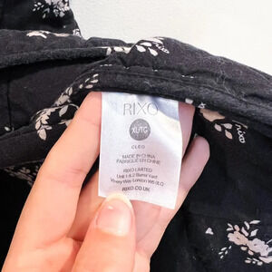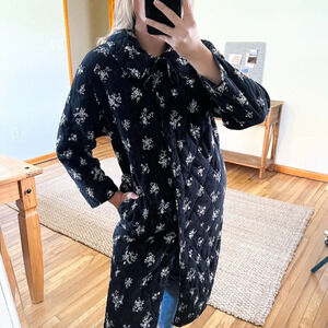RIXO Cleo Quilted Black Floral Collared Bohemian Designer Longline Long Coat XL