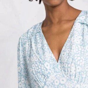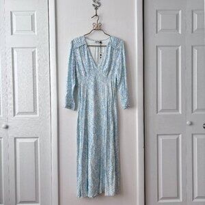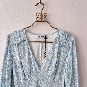 RIXO Clover Floral Print V-Neck Ruffled Long Sleeve Midi Dress