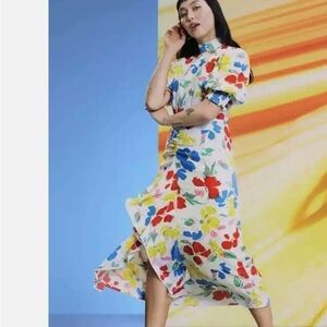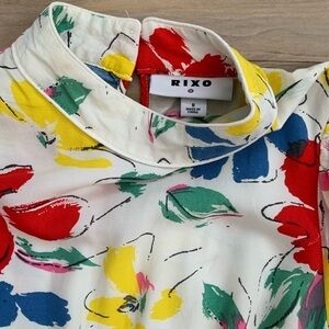 RIXO Floral Maxi Dress Mock Neck Cascade Ruffle Split