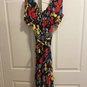 RIXO For Target Black Floral Off the Shoulder Puff Sleeve Maxi Dress