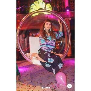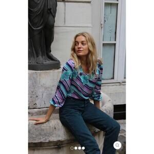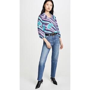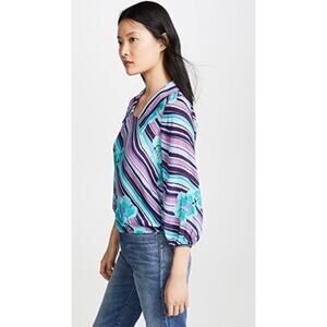 RIXO LONDON Jessie Hawaii Stripe Blouse In Hawaii Stripe Lilac Mint Size L NWT