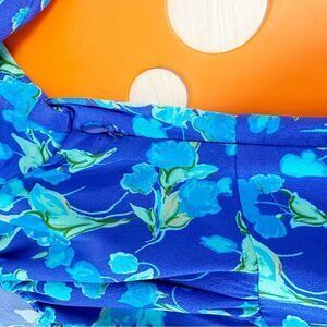 RIXO Lilita Cobalt Blue Floral Print Silk Mini Dress short Sleeve Sz 6