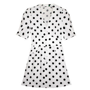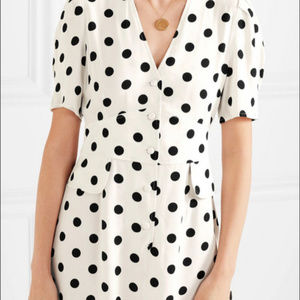 RIXO London Laura Button Down Mini Dress, White Polka Dot, SizeM