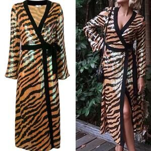 RIXO London Gigi Midi Sequin Dress In Tiger - pristine condition, 100% authentic