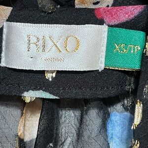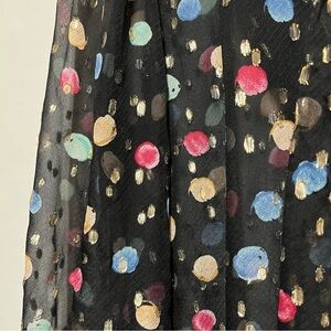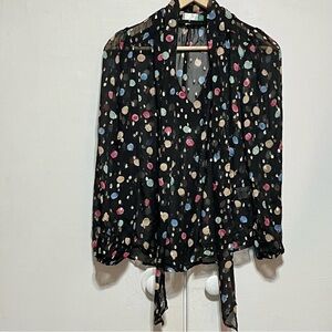 RIXO Moss Tie Neck Blouse in Sequin Watercolour Spot Black Pastel. Size XS. As seen on Kelly Ripa