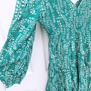 Who doesn't get excited when the first signs of green appear and you know that Spring has finally sprung. Dress up in this green cotton Sasha broderie anglaise dress from Rixo that is adorned with a beautiful floral pattern for a look that's made for you to bloom and thrive in. Step out and smell the start of a new season. Featuring a sweetheart neckline, a full shape, ruched details, a short length, a v-back, long sleeves and elasticated cuffs.