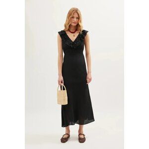 Description from retailer: It's the details on this Seraphina dress that make it extra special - scalloped ruffles at the collar and the satin ribbon that ties in a bow. The empire seam and bias-cut skirt are RIXO signatures.