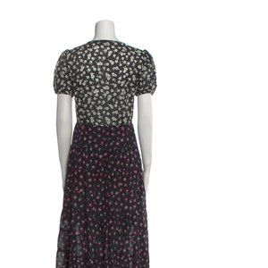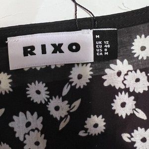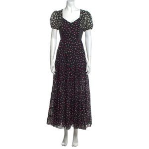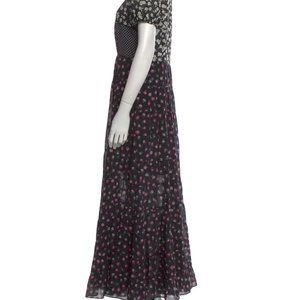 Rixo black cotton maxi dress Sweetheart-neck, floral print, panelled, elasticated cuffs, tiered skirt, partially lined Concealed zip fastening at side.