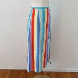 RIXO Thalia multi chalk stripe rainbow midi skirt size XS
