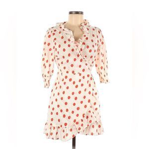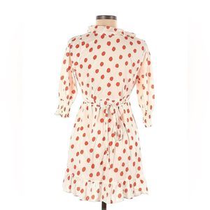 Elbow puff sleeve polka-dot dress with dot print. Cotton voile fabric offers a drape and lightweight sensation. Ruffle detail add charm to posh dress.