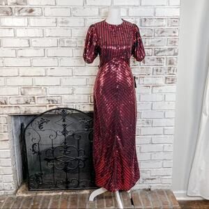 RIXO x Laura Jackson Daisy Velvet Trimmed Sequin Crepe Midi Maxi Dress S