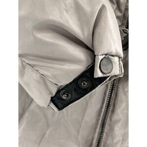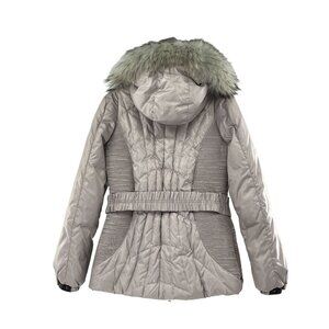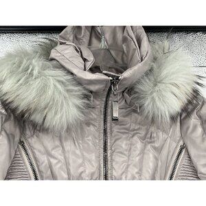 RIZAL Womens Quilted Down Puffer Coat Raccoon Fur Trim Belted Waist Small