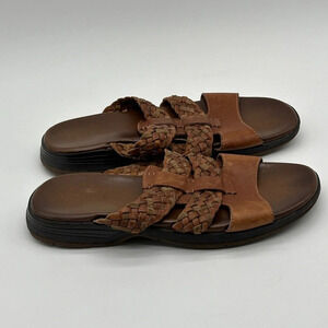 RJ COLT Vintage Mens Brown Leather Slip On Sandals Braided Leather Size 12