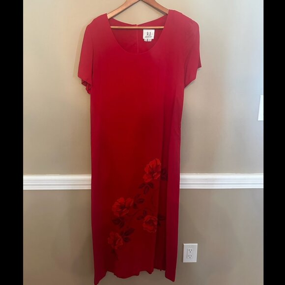Long red dress with floral pattern