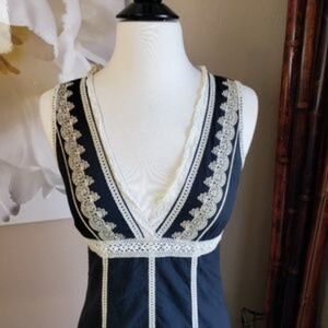 R&J Couture ~ Black Dress w/ Tan Lace Trim ~ Size Small