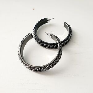 RJ Graziano Pewter Colored Braided Hoop Earrings
