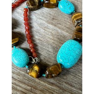 R.J. Graziano Tiger Eye Turquoise Gemstone Bead Necklace Statement Boho Western