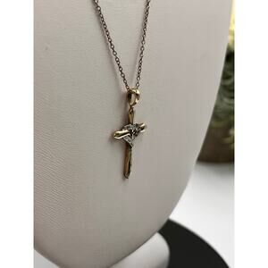 RJ Sterling Silver Vermeil Diamond Heart Cross Pendant Cable Chain Necklace