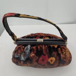 RJ Vintage 50s/60s Velvet Carpet Fabric Floral Top Handle Frame Handbag Purse