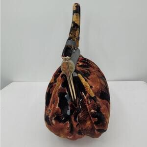 RJ Vintage Velvet Carpet Fabric Floral Top Handle Frame Handbag Purse