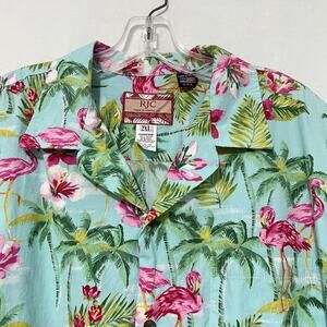 RJC Hawaiian Shirt Mens 2XL Flamingo Palm Tree Aloha Made in Hawaii USA Cotton