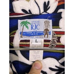 RJC Hawaiian Shirts Mens Size Large Blue Hibiscus Aloha Waikiki Surfer USA