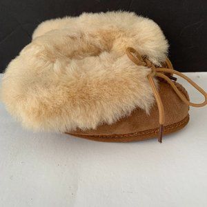 RJS Fuzzies Toddlers’ Brown & Tan Sheepskin Booties W/ Fold Down Collar: M