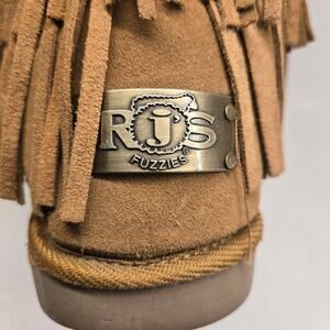 RJ's Fuzzies Suede Shearling Golden Tan Foldover-Top Fringed Cozy Boots, Size 10