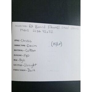RK Brand Flannel Lined Jeans Men's Size 42x32