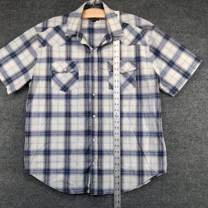 Condition: Cotton blend short sleeve western snap shirt with plaid pattern. Blemish on collar as pictured.