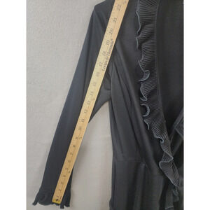 R&K Originals Knit Black Wrap Dress with Satin Ruffle Trim - Size Missing