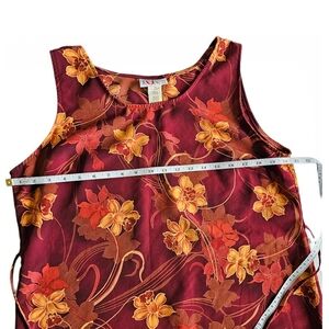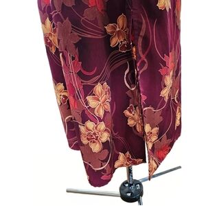 Chic vintage R & K Originals floral maxi dress in rich burgundy with vibrant orange accents.