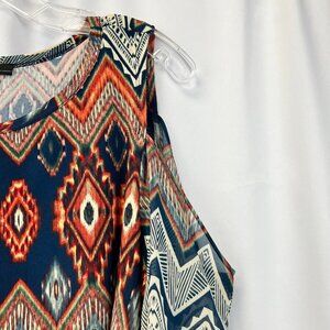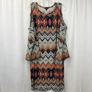 R&K Womens Multicolor Aztec Cold Shoulder Sleeve Round Neck Sheath Dress Sz 18W