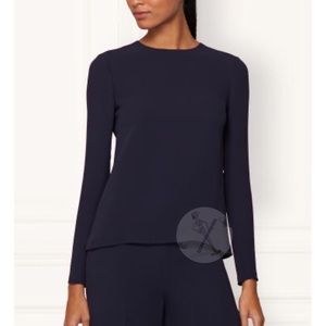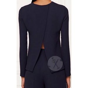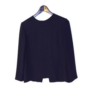 The simple elegance of this Ralph Lauren Collection Marcella Open-Back Silk Blouse, in Navy is undeniable. Perfectly matches the RLC Cindy navy skirt in my closet as a suit. Ralph Lauren Collection "Marcella" blouse Shirt jacket Silk crepe Open envelope back Long sleeves Jewel neckline Made in Italy NOT EXACT, FLAT: B 18.5” SH 15.5” seams SL 20.5” Navy blue shacket blouse blazer wedding work appropriate event cocktails Price firm - all offers declined FINAL SALE NO OFFERS PRICE FIRM