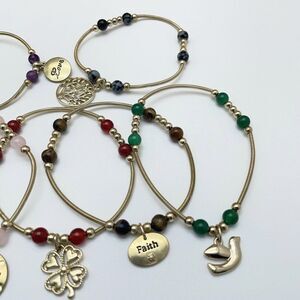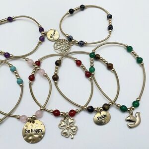 R.L. Graziano Inspire 7 pc Stretch Bracelets Semi Precious Gemstones Charms